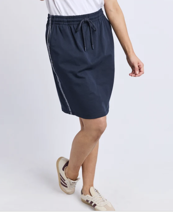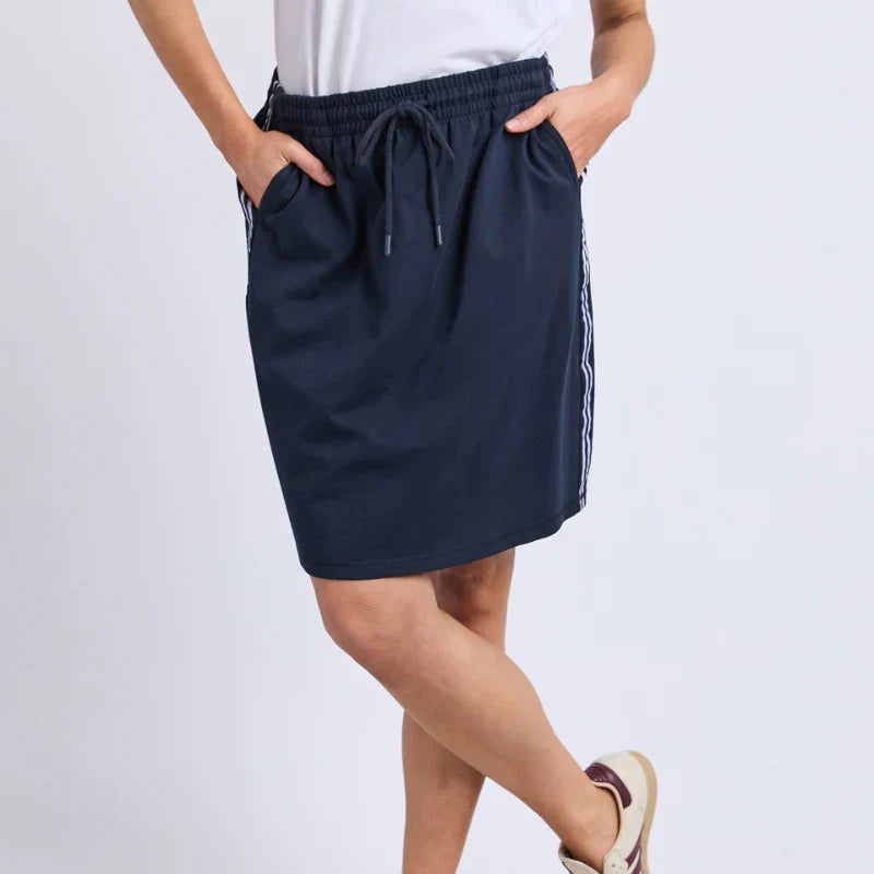 The Interval Skirt is a casual favourite made for comfort and style. Featuring an elastic waist with drawcord, side pockets, and a sporty side taping detail, this easy pull-on design is perfect for relaxed days and weekend wear. Pair it with a tee or sweatshirt for a laidback look.