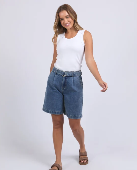 Your new go-to denim short. Featuring a fixed waist with a removable belt for styling options and handy side pockets, the Saint Short combines classic cool with effortless wearability. Ready to be your everyday fave.