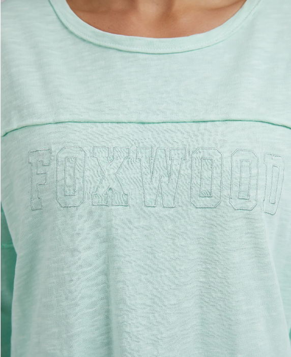 Cut from a comfy, cotton slub jersey this women's top features a crew neck, trendy exposed stitching and side split hi-low hem. With the Foxwood branding accross the front.