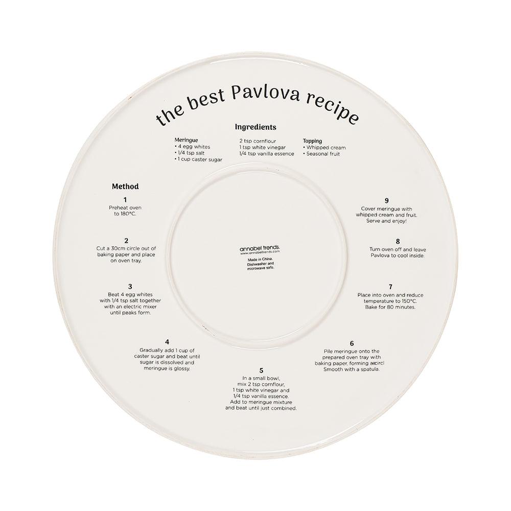 The best Pavlova Plate - Impress your guests with our round 30cm ceramic Pavlova Plate, with a bonus 'Best pavlova Recipe' printed on the back.