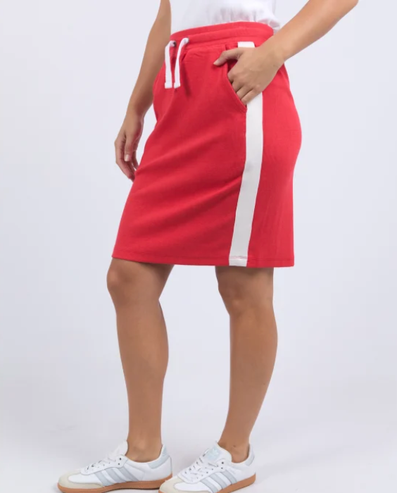 Power through your day in the Market Skirt. Featuring on-trend side contrast tape, a comfy elastic waist, and handy side pockets, this skirt blends casual cool with effortless style. Made from lightweight fabric, it's the perfect piece to elevate your everyday wardrobe.