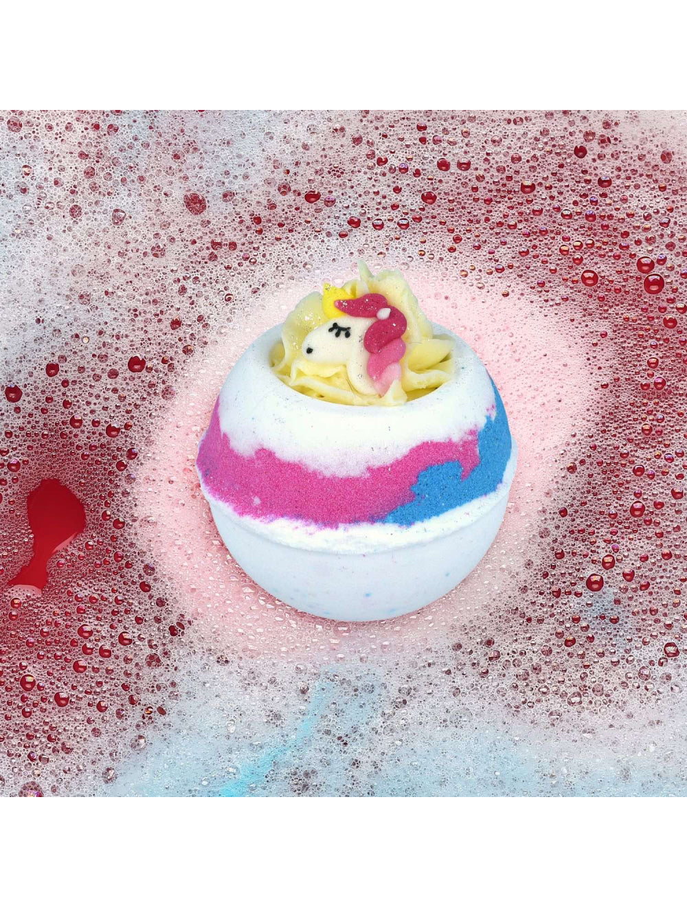 Features: 100% handmade, with a playful raspberry fragrance! Enriched with cocoa & shea butter piping! Infused with pure essential oils for skin nourishment! Includes a surprise toy hidden inside! Vegan and cruelty-free! Paraben and preservative-free! No microplastics or traditional glitters!