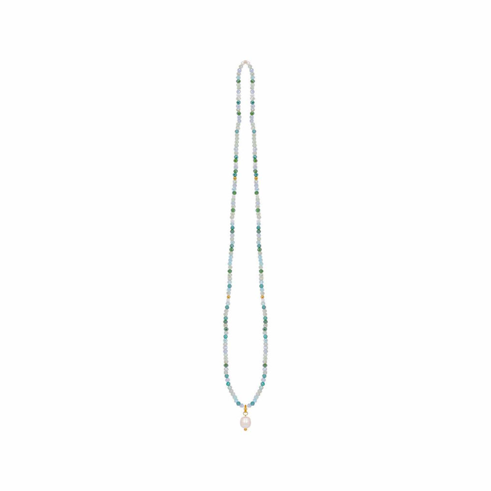 - Glass beaded wrap bracelet or necklace with natural pearl pendant.