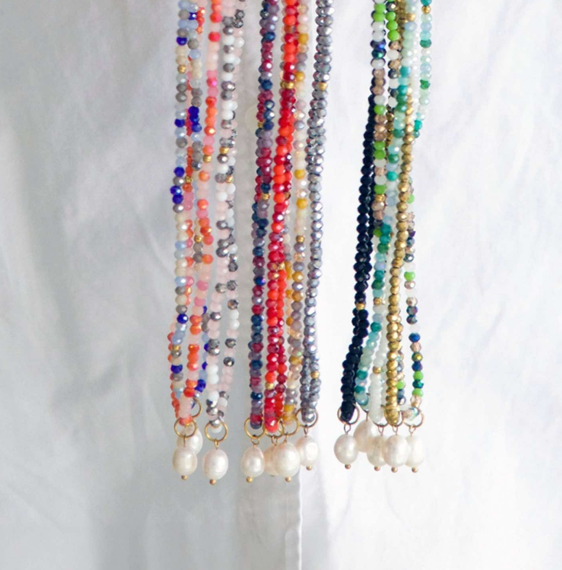 - Product Details: Glass beaded wrap bracelet or necklace with natural pearl pendant..