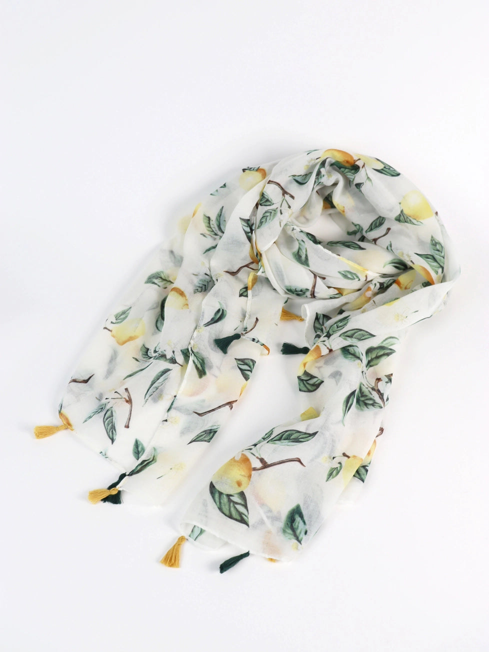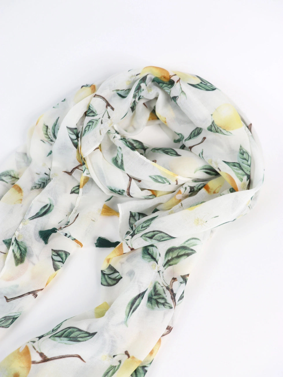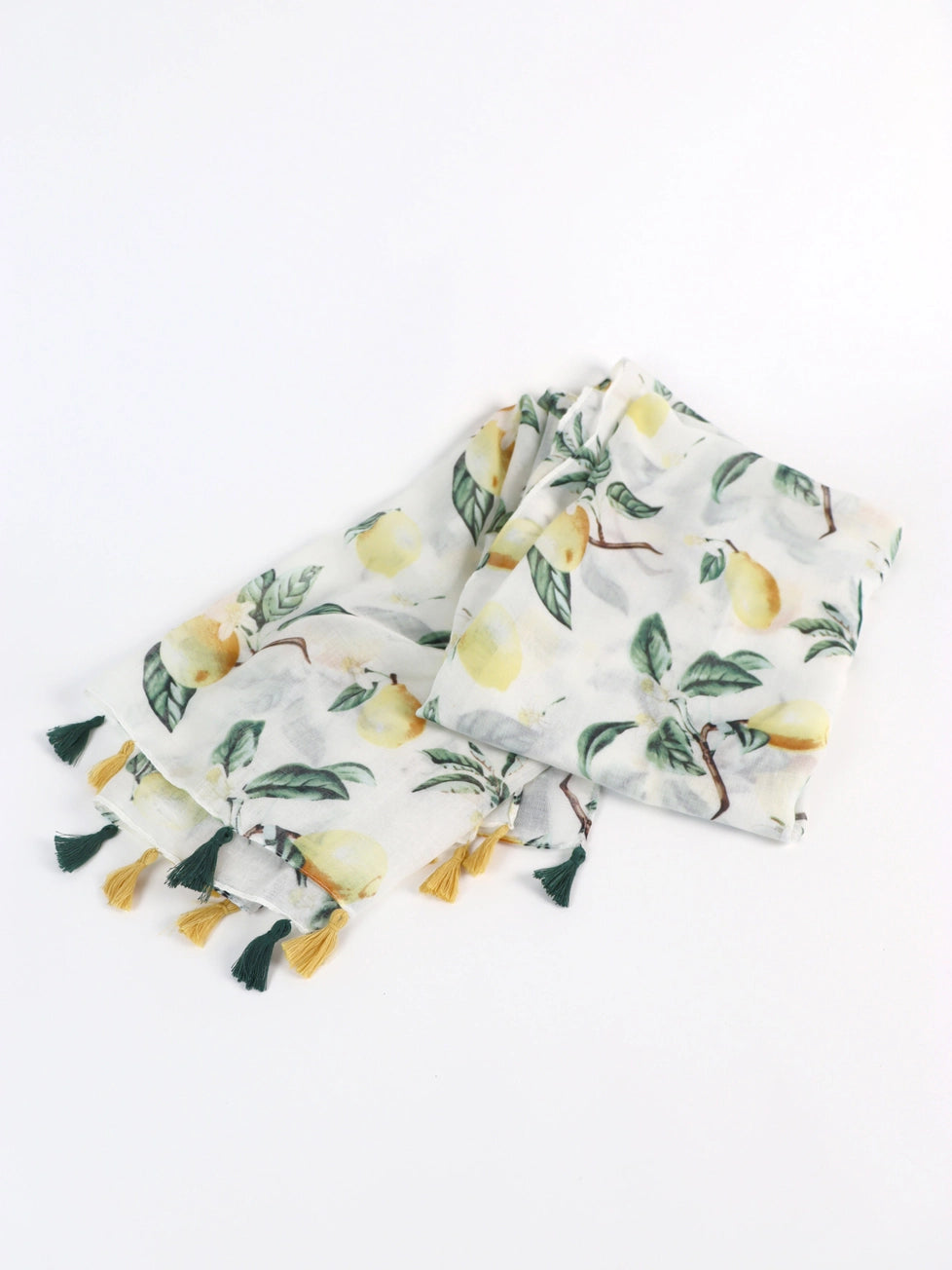 Freshen up your look with the Limone Tassel Scarf. Featuring a vibrant lemon print and soft, breathable fabric, this lightweight wrap adds a playful, sunny vibe to any outfit perfect for spring and summer styling. Material: Cotton + Polyester Dimensions: 180 x 90cm