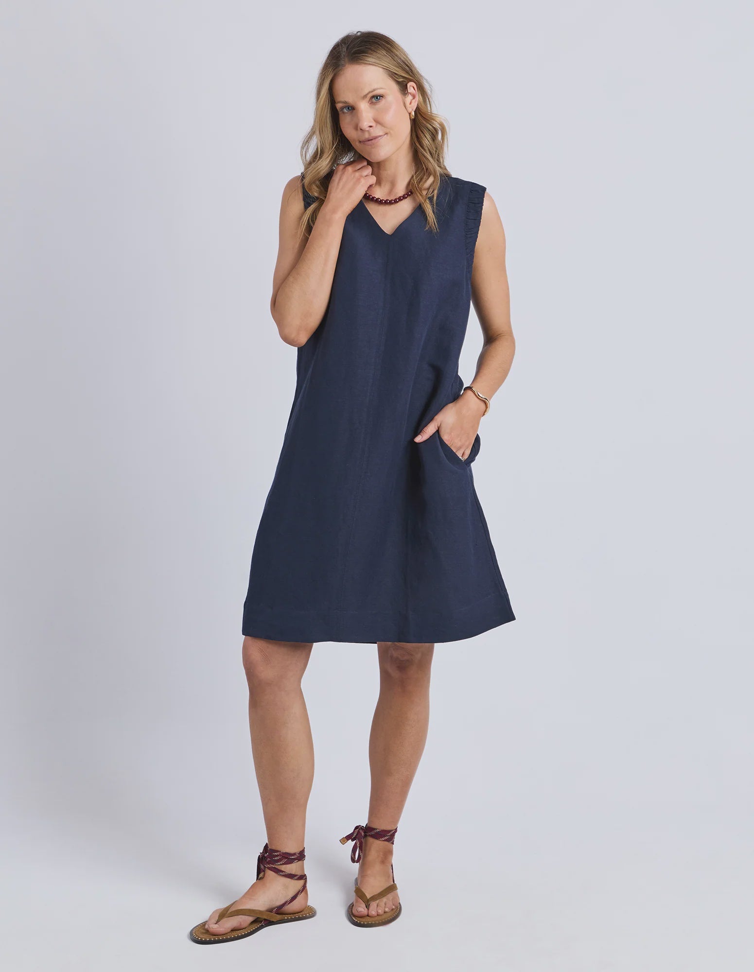 Say hello to the Bermuda Dress, the linen blend style that is as fun as it is flattering. With its V-neckline, frill sleeves and side pockets, it is the kind of dress that makes warm days feel even better.