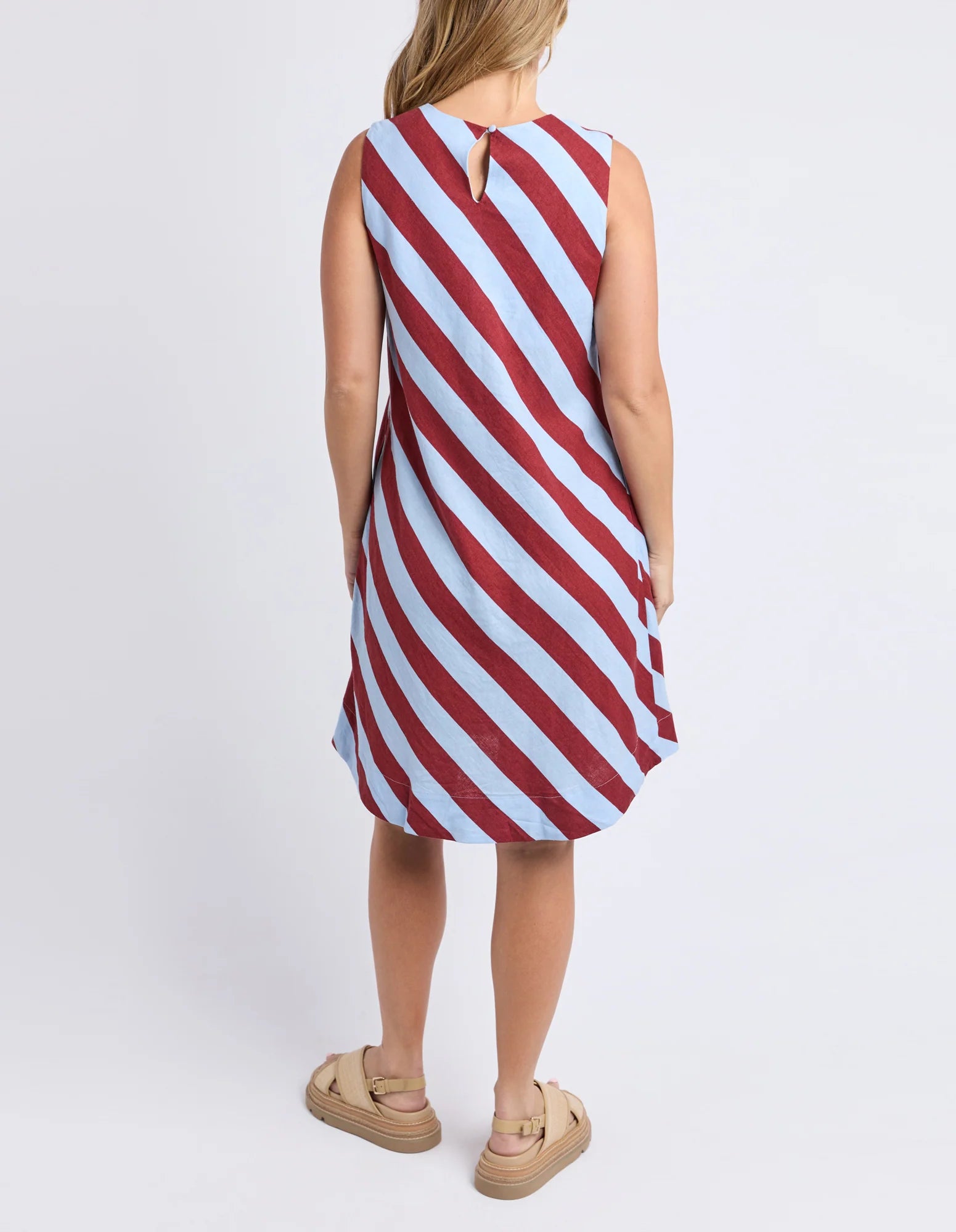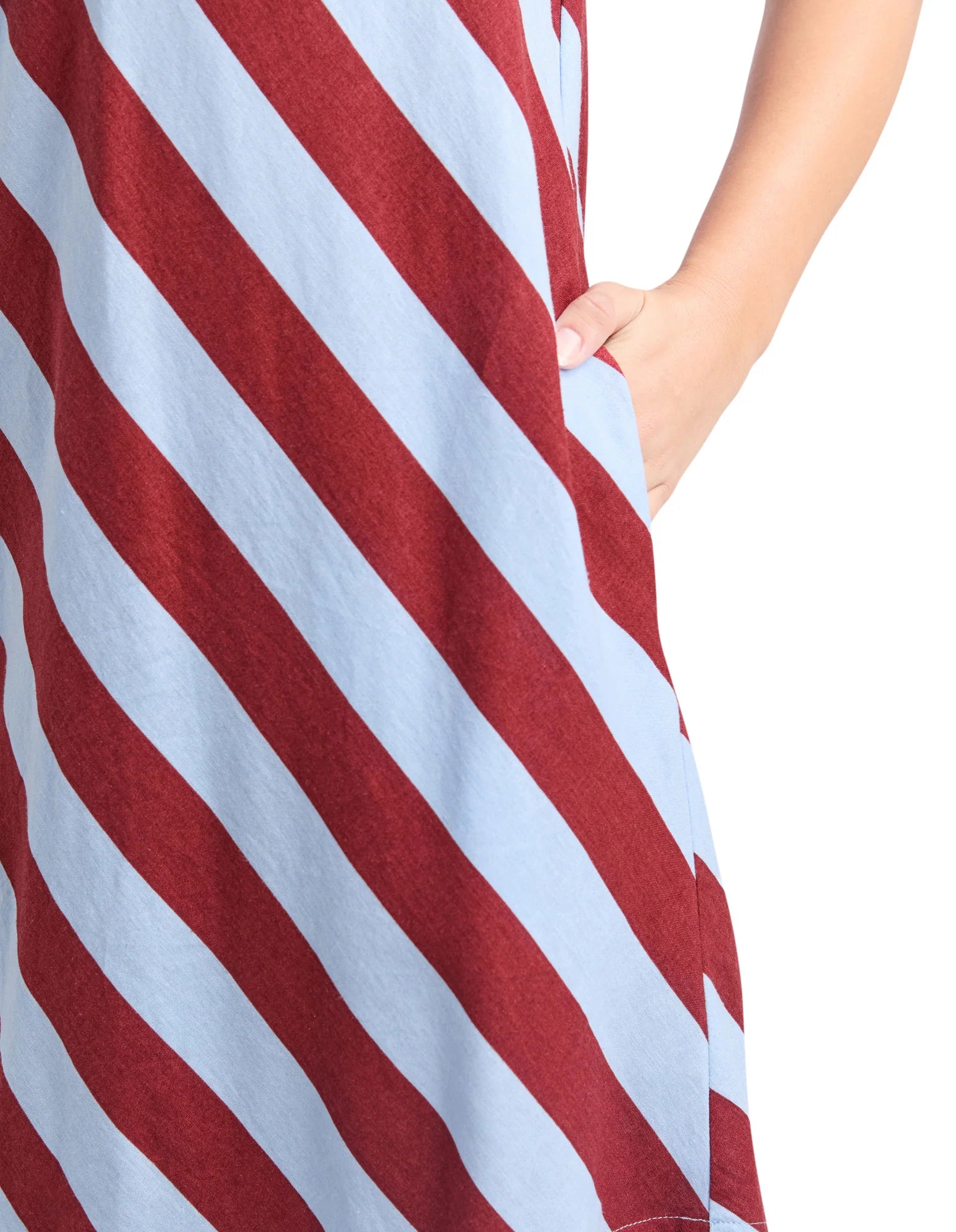 Turn heads in the Esmarie Stripe Dress. With its bold diagonal stripes, breezy linen blend and handy side pockets, this dress is all about easy summer style. A back keyhole opening finishes the look.