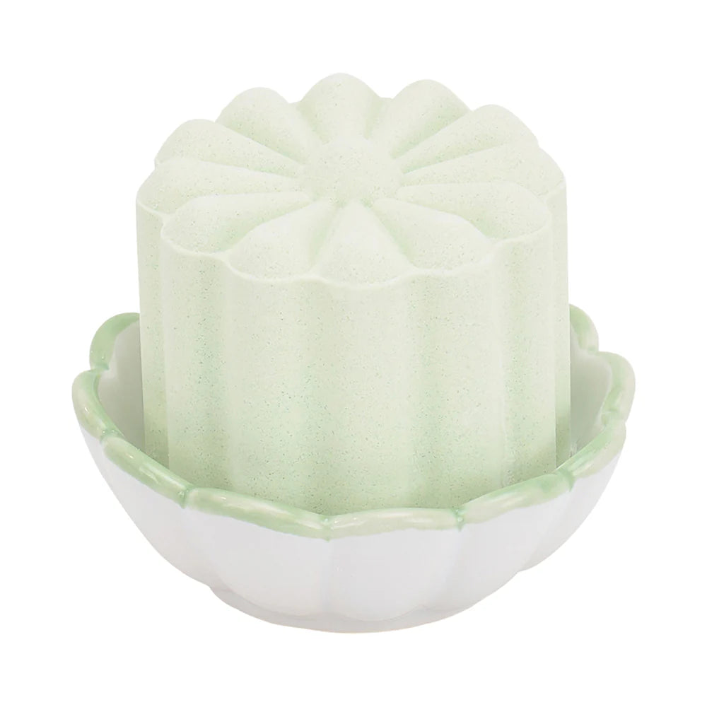 This luxurious gift set includes a pair of Exfoliating gloves for silky smooth skin, a shower steamer that will transport you to a state of relaxation, and a darling scallop edged shower steamer dish.