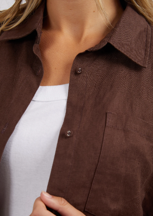 Beautiful linen blend shirt designed to drape and fall stylishly with your outfit.